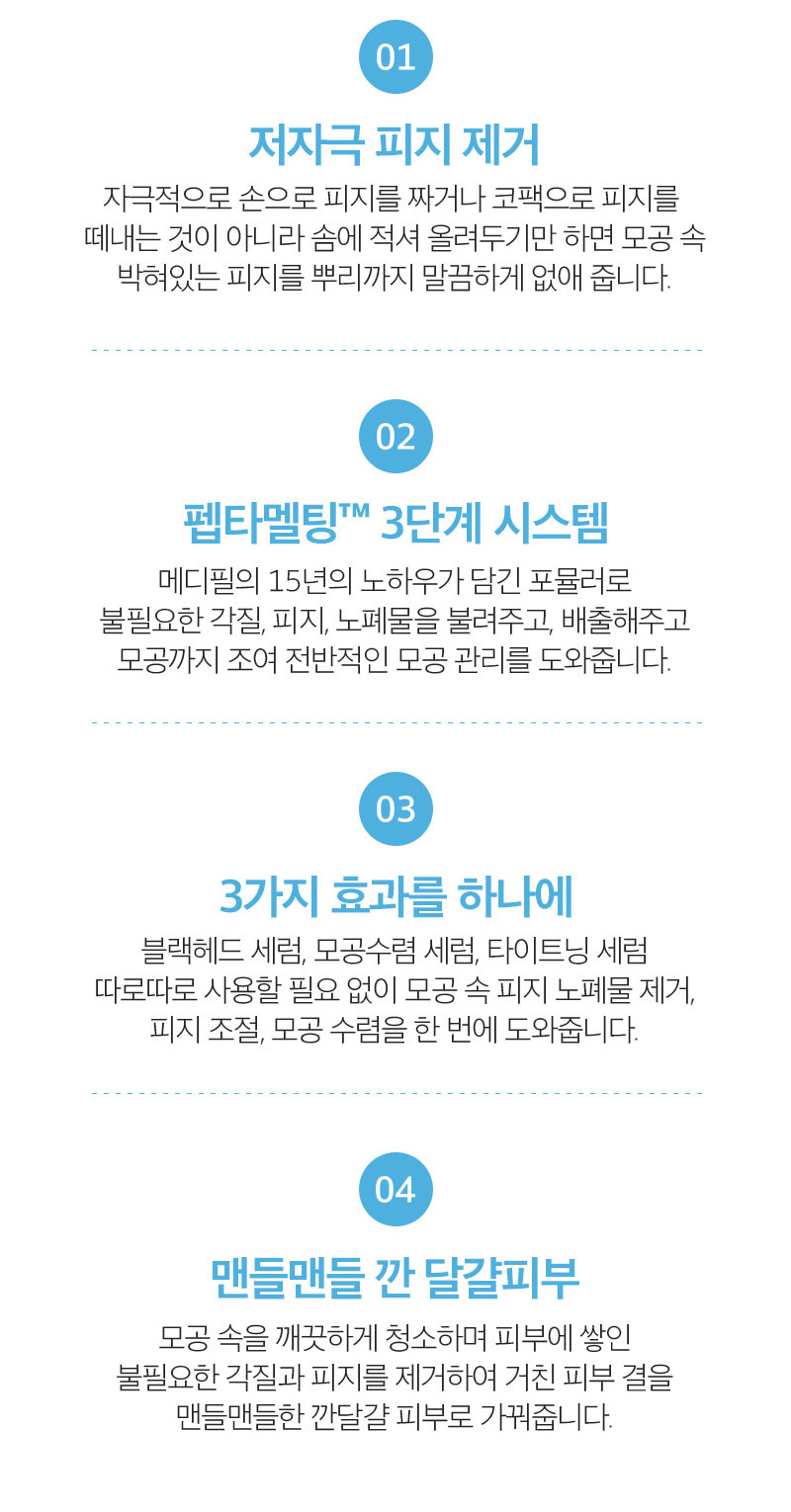 모공 속 피지를 녹여 말끔히 제거하고