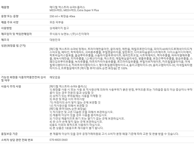 메디필 엑스트라 슈퍼 9 플러스 250ml 화장솜 코 블랙헤드 피지 제거 연화제